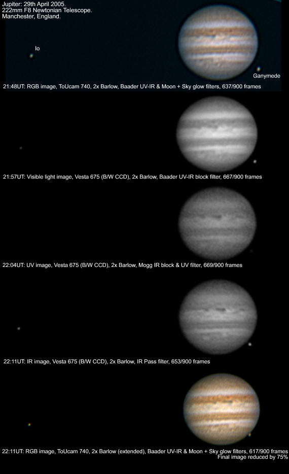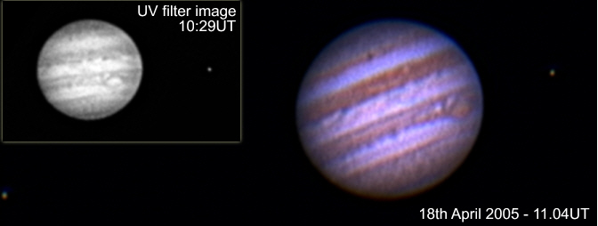 made from the developed end of print film. I used these to produce the IR (22:48UT) and UV (22:38UT) images opposite, in conjunction with a Vesta 675, modified with a black and white CCD. Notice that the moon