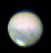 Diameter: 16.8 Arc Seconds Seeing 3/10 but a bit of surface detail is visible along with the polar cap. Its possible that there is a bit of haze visible around the southern limb. |